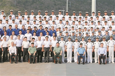 四月的三亞,天高海闊,日暖風(fēng)清。軍港內(nèi),三型主戰(zhàn)艦艇一字排開,按海軍最高禮儀懸掛滿旗,來自海軍部隊(duì)和艦艇科研生產(chǎn)單位的代表2400人在碼頭整齊列隊(duì),氣氛隆重?zé)崃摇?/p>