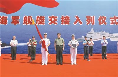中央和國家機(jī)關(guān)有關(guān)部門、軍委機(jī)關(guān)有關(guān)部門、海軍、海南省以及艦艇科研生產(chǎn)單位的負(fù)責(zé)同志參加交接入列儀式。