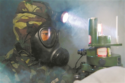 官兵在全防護(hù)狀態(tài)下訓(xùn)練。