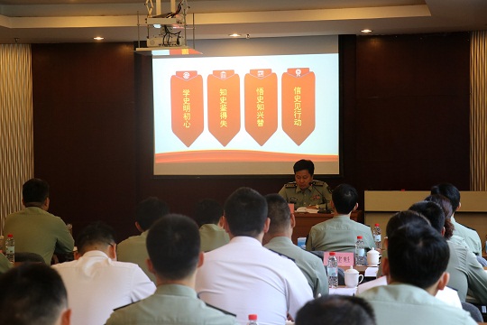 為了讓大家了解軍法工作歷史,葉宏以《學史知史悟史信史 做矢志奮斗強軍的軍法人》為題,進行專題黨課輔導,以翔實的史料向大家展示了我軍審判工作在血雨腥風中誕生、在革命戰(zhàn)爭中成長、在強軍興軍中發(fā)展的風雨歷程。