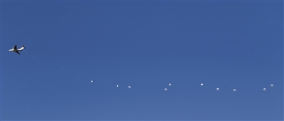 抵達預(yù)定空域后,官兵接連躍出艙門。