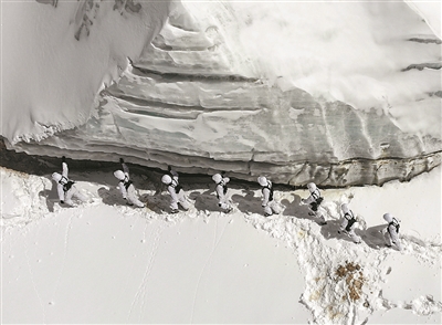 偵察隊員不懼困難,向冰川地帶徒步行軍。