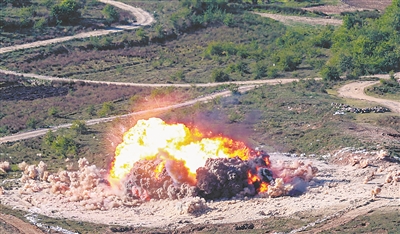 完成首輪打擊,戰(zhàn)機迅速躍升,大機動脫離直插云霄。數(shù)分鐘后,戰(zhàn)機再次進入攻擊航線。到達最佳攻擊陣位,飛行員果斷按下發(fā)射按鈕,兩枚炸彈脫離戰(zhàn)機后落向靶標(biāo),地面瞬間騰起一團火焰和氣浪。