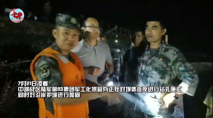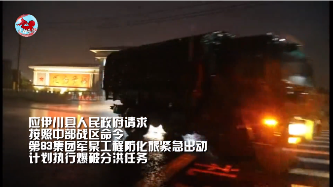 20日凌晨,河南省洛陽(yáng)市伊川縣平等鄉(xiāng)馬回營(yíng)村伊河攔水壩出現(xiàn)險(xiǎn)情。按照中部戰(zhàn)區(qū)命令,第83集團(tuán)軍某工程防化旅立即啟動(dòng)預(yù)案,炸藥、雷管、救生舟艇等爆破和防洪器材緊急裝車(chē),75名官兵、15臺(tái)裝備車(chē)輛在最短時(shí)間內(nèi)集結(jié)完畢,火速馳援洛陽(yáng)市伊川縣任務(wù)區(qū),執(zhí)行爆破分洪任務(wù)。