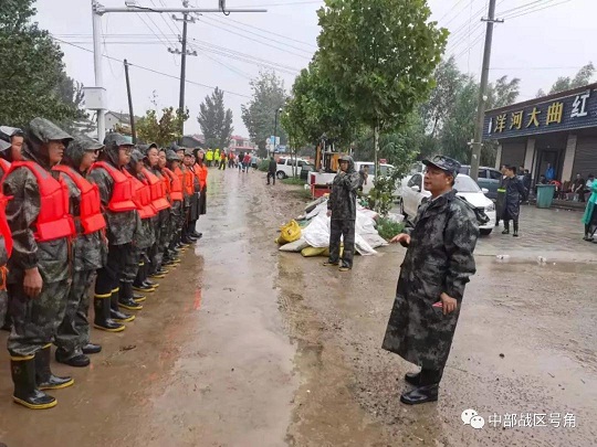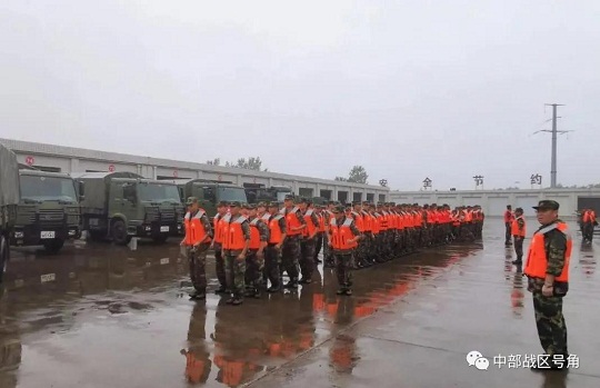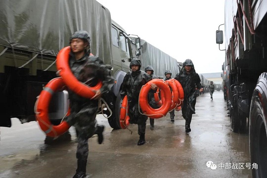 21日上午,根據(jù)中部戰(zhàn)區(qū)命令,駐豫火箭軍某部派出200名官兵,攜帶12艘皮劃艇、1000多件救生衣、500多個(gè)鍬和鎬等必要救生器材,奔赴鄭州市。