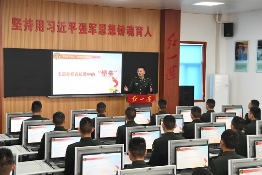 圖為“紅一連”指導員鄭紀文向官兵講述“支部建在連上”歷史根源。張永進 攝