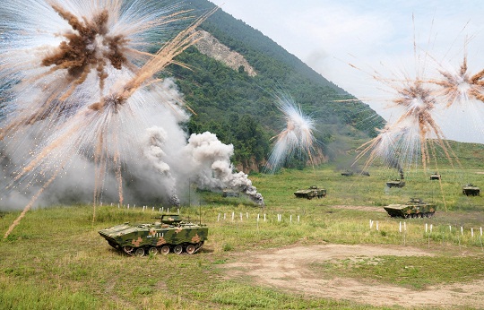 一陣尖銳的戰(zhàn)斗警報中,一場實戰(zhàn)化背景下全員全裝戰(zhàn)斗演練再次打響。鐵甲轟鳴,濃煙滾滾。行軍途中,“紅一連”官兵接連成功處置多個敵情,提前30分鐘齊裝滿員到達預定集結地域。
