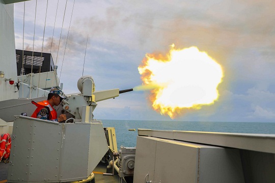 圖為參加“海洋之杯”項目的廣元艦副炮射擊。張彬 攝