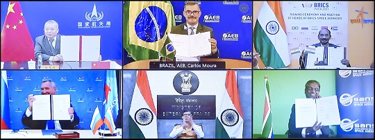 本報訊 見習記者韓瀟 通訊員張未 記者從國家航天局獲悉,2021年8月18日,國家航天局局長張克儉與巴西航天局局長卡洛斯·莫拉、俄羅斯國家航天集團總經(jīng)理羅戈津、印度空間研究組織主席西萬和南非國家航天局局長穆薩米等金磚國家航天機構(gòu)負責人進行了視頻會議,并簽署了《關(guān)于金磚國家遙感衛(wèi)星星座合作的協(xié)定》。