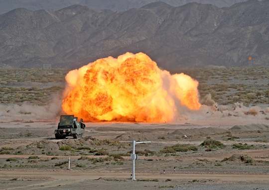 圖為8月22日,“國(guó)際軍事比賽-2021”中國(guó)庫(kù)爾勒賽區(qū)在“蘇沃洛夫突擊”比賽場(chǎng)正式開(kāi)幕,軍事課目演示中綜合掃雷車(chē)進(jìn)行實(shí)彈射擊。羅興倉(cāng) 攝