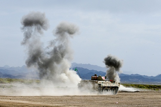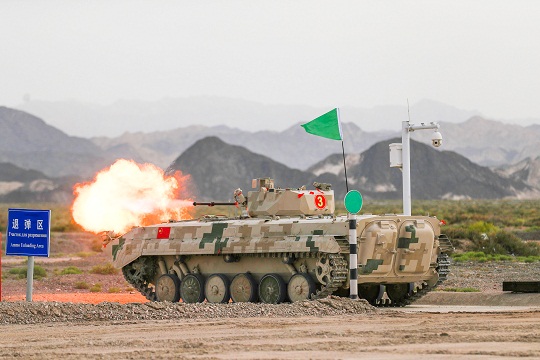 圖為中國參賽隊陸軍代表隊對步戰(zhàn)車目標進行實彈射擊。王俊 攝