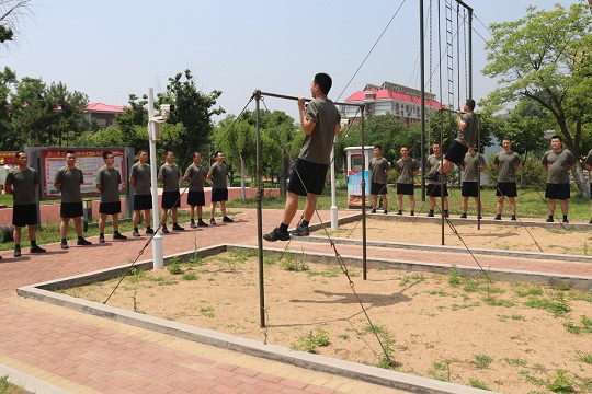 圖為官兵在智慧訓練場進行引體向上考核。上官明 汪學潮 攝
