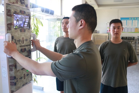 圖為官兵利用“智慧訓練系統(tǒng)”進行體質(zhì)測試。上官明 汪學潮 攝