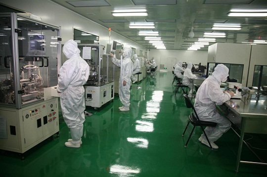 圖為航天科工203所晶體元器件技能人員正在千級超凈間開展生產(chǎn)作業(yè)。 航天科工供圖