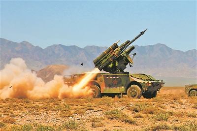 “嘟嘟嘟……”急促的警報聲劃破戈壁上空。“敵”機實施超低空突防,地面雷達飛旋、導彈昂首,官兵快速織就一張防空火力網(wǎng)。