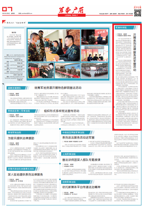今年以來,軍事科學(xué)院持續(xù)組織開展系列法律服務(wù)進(jìn)軍營活動,及時(shí)運(yùn)用法律武器解決在軍事科研、練兵備戰(zhàn)中遇到的問題。