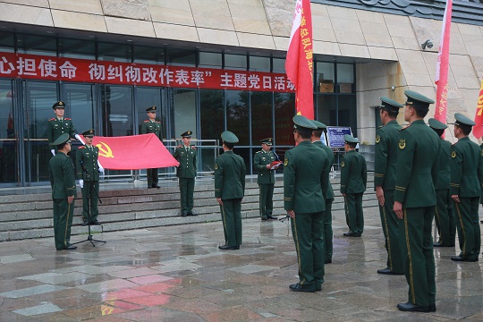 圖為支隊在原子城紀念館前開展主題黨日活動。密李英 攝