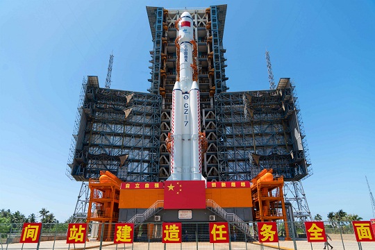 圖為空間站天和核心艙發(fā)射。