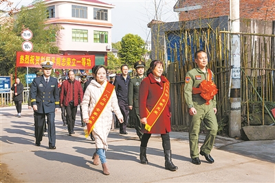 “袁偉真厲害啊,一年兩次立功!”“袁偉這么優(yōu)秀,我也想把兒子送到部隊(duì)去鍛煉鍛煉。”看著隊(duì)伍前方“一等功臣之家”和“二等功臣之家”兩塊熠熠生輝的牌匾,聞?dòng)嵹s來的鄉(xiāng)親羨慕之情溢于言表。