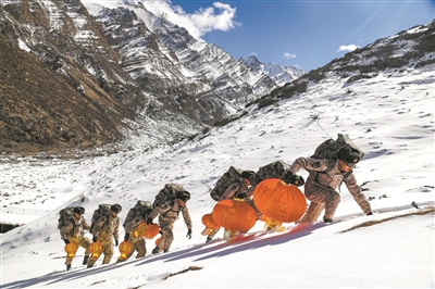 崗拉哨所海拔4820米,是山南軍分區(qū)所屬海拔最高的哨點。哨所常年風(fēng)雪肆虐。要趕在大雪完全封山前,把天南海北“家的味道”送上哨所,并不是件容易的事。