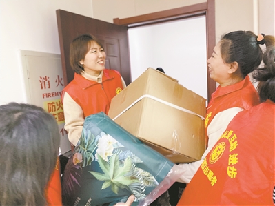 羅雅楠(左二)所在社區(qū),是群眾公認(rèn)的環(huán)境美、生活美、心靈美“三美”社區(qū)。平時(shí),她常與志愿者一起關(guān)愛社區(qū)孤寡老人,為他們提供幫助。邵天亮 攝