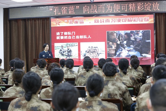 圖為高銳給新聘文職人員談成長歷程和個(gè)人認(rèn)識(shí)。汪學(xué)潮 攝