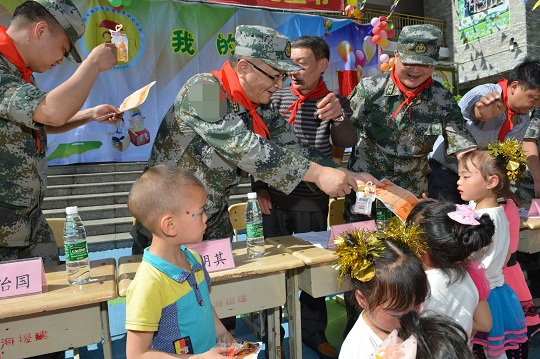 圖為2014年某部官兵前往結(jié)對(duì)小學(xué)與孩子們共度六一,給孩子們頒發(fā)獎(jiǎng)狀,見(jiàn)證他們的成長(zhǎng)與喜悅。張鵬程 攝