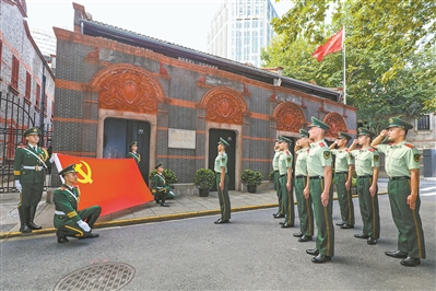 夏日申城,滿目綠色。站在武警上海市總隊(duì)執(zhí)勤第四支隊(duì)十中隊(duì)營房頂層望去,一座紅色基調(diào)浸染的石庫門建筑,在現(xiàn)代都市建筑群中格外醒目。那里,正是黨的一大會(huì)址。