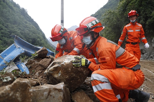 凌晨時分,李榮吉率領(lǐng)應(yīng)急救援隊伍,向距離駐點(diǎn)17公里外的大池溝村疏通道路,巨龍般的救援部隊沿315國道時而盤山而上,時而環(huán)山而下。由于不間斷的余震,不時有石頭和泥沙從頭頂飛下,一路上官兵們遇到多次塌方,公路全被亂石和爛泥淹沒,很多地方無路可走。