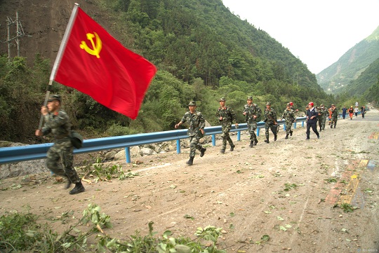 災(zāi)區(qū)干部群眾感慨地說,危難時刻,更顯子弟兵與人民的魚水深情。