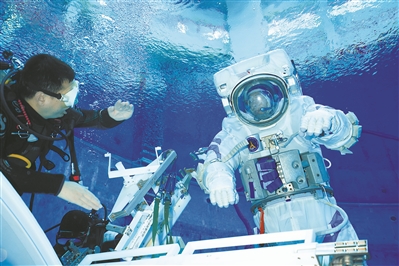 這是該中心模擬出艙訓練的主要場地。航天員教員趙陽與航天員一起開展水下訓練,已很長時間。一旦忙起來,趙陽一天只睡4個小時、吃一頓飯。教員的任務是分解每個動作,細化每個姿態(tài),幫助航天員迅速、安全地找到返回的路。