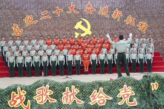 武警青??傟?duì)機(jī)動(dòng)二支隊(duì)演訓(xùn)場(chǎng)上,官兵們跨彈坑、攀云梯、翻高墻……突然一聲哨響:全體集合!大家集體重溫入黨誓詞。之后,官兵在寫(xiě)有“永遠(yuǎn)聽(tīng)黨話,堅(jiān)定跟黨走,喜迎二十大,奮進(jìn)新征程”的橫幅上寫(xiě)下自己的名字。