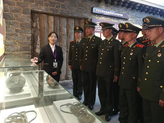 圖為官兵參觀果洛州班瑪縣紅軍溝紀(jì)念館。夏大川 攝