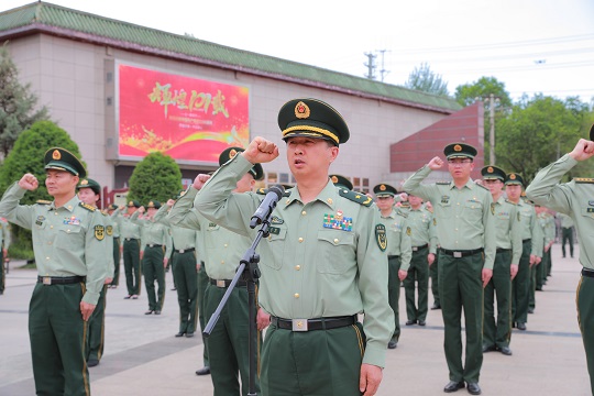 圖為武警青??傟?duì)少將政治委員楊志強(qiáng)領(lǐng)誓。朱曉坷 攝