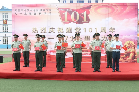 圖為該支隊(duì)全體黨員重溫入黨誓詞。