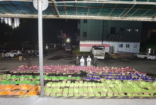 針對(duì)臺(tái)風(fēng)“暹芭”剛過境,走私分子可能會(huì)心存僥幸利用較低潮位從事走私活動(dòng)的現(xiàn)實(shí)情況,該局科學(xué)研判,嚴(yán)密部署執(zhí)法力量加強(qiáng)轄區(qū)管控。7月6日晚23時(shí)許,在轄區(qū)海域蹲守的海警執(zhí)法員發(fā)現(xiàn)有不明“大飛”蹤跡,經(jīng)過圍追堵截最終將涉嫌走私“大飛”一舉抓獲,現(xiàn)場(chǎng)抓獲涉案嫌疑人兩名,查獲涉嫌走私香煙一批,該船后置5臺(tái)“雅馬哈”機(jī)頭,總馬力超1000匹。經(jīng)合浦縣疾控中心對(duì)上述涉案物品及人員進(jìn)行消殺、核酸檢測(cè),結(jié)果均為陰性。經(jīng)清點(diǎn),查獲美國“百樂”牌香煙約400件,共計(jì)1.9萬余條,總案值約500萬元。目前,該案件正在進(jìn)一步深挖擴(kuò)線中。