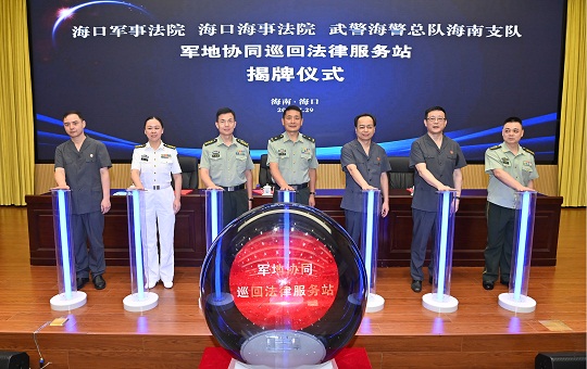 會后,軍地法院領導和海南海警局領導共同為“軍地協(xié)同巡回法律服務站”舉行揭牌儀式,該法律服務站為海警局依法履行海上維權執(zhí)法職責,打擊海上違法犯罪活動,守護一方海上平安提供堅強法律保障。