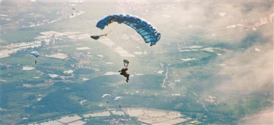圖為特戰(zhàn)隊員利用翼傘進行武裝遠程滲透。楊越旺 攝