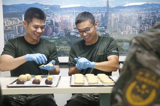 該局精心策劃相關(guān)事宜,提前定制特殊模具,指派專(zhuān)人指導(dǎo)月餅制作。為讓小小月餅吃出滿(mǎn)滿(mǎn)的“儀式感”,執(zhí)法員們將一抹抹鄉(xiāng)愁融進(jìn)了月餅里,把一句句祝福包在了月餅中。“中國(guó)海警”、“海疆衛(wèi)士”、“不忘初心”、“絕對(duì)忠誠(chéng)”……一個(gè)個(gè)獨(dú)具海警特色的月餅記錄了海警人的家國(guó)情懷。