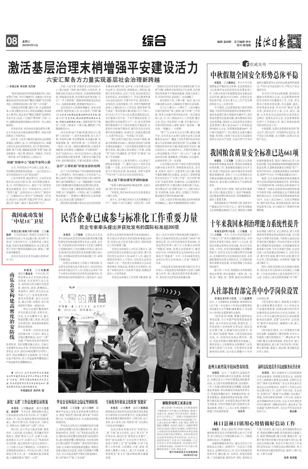 本報文昌(海南)9月13日電 記者廉穎婷 通訊員喻鵬 王茄歡 黃國暢 北京時間2022年9月13日21時18分,我國在文昌航天發(fā)射場使用長征七號改運載火箭,成功將“中星1E”衛(wèi)星發(fā)射升空。衛(wèi)星順利進入預定軌道,發(fā)射任務獲得圓滿成功。該衛(wèi)星主要用于為用戶提供高質量的話音、數(shù)據(jù)、廣播電視傳輸服務。