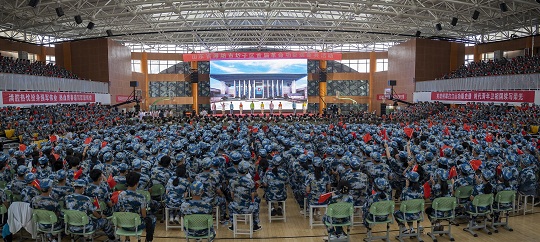 圖為軍地領(lǐng)導(dǎo)為新兵出征壯行。