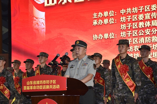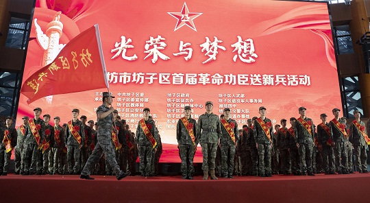 圖為山東省濰坊市坊子區(qū)首屆革命功臣送新兵活動(dòng)現(xiàn)場(chǎng)。
