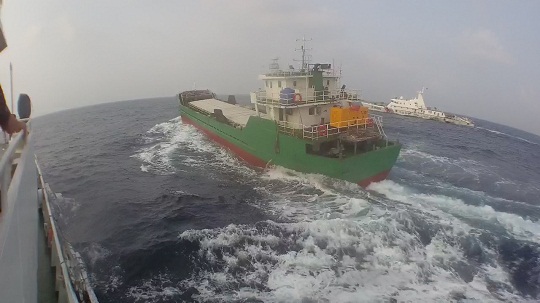 當(dāng)日凌晨2時(shí)許,廣東海警局接群眾報(bào)警稱,在擔(dān)桿水道附近海域有一艘可疑船舶往擔(dān)桿島以南附近海域航行。接報(bào)后,該局立即派遣執(zhí)法艇前往目標(biāo)海域進(jìn)行查緝。執(zhí)法艇到達(dá)目標(biāo)海域后對海面全方位進(jìn)行搜索,并在凌晨4時(shí)30分,成功在目標(biāo)海域發(fā)現(xiàn)該艘可疑船只。執(zhí)法員隨即對其進(jìn)行喊話示警,但該嫌疑船拒不停船接受檢查,且試圖改變航向,加速逃竄,執(zhí)法艇立即調(diào)整航向航速對其進(jìn)行追緝。