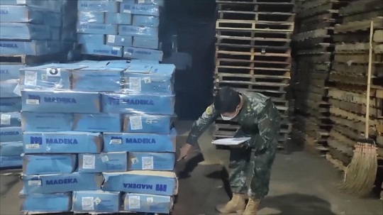 圖為清點(diǎn)走私貨物。
