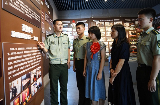 圖為在武警合肥支隊史館,萬鴻玥在學(xué)習(xí)父親萬四海生前事跡。