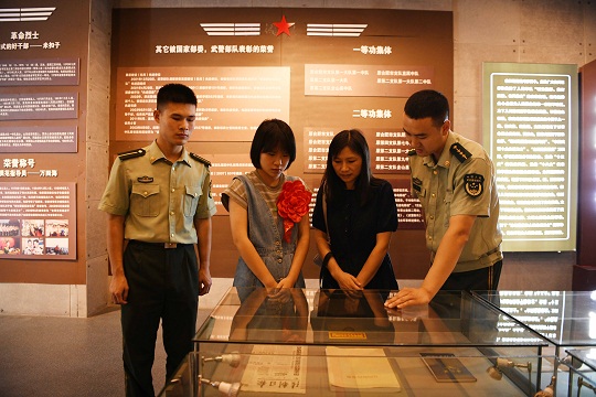 啟程前,武警合肥支隊邀請萬鴻玥和她的母親來到部隊,看一看父親曾經(jīng)奮斗的軍營,聽一聽父親的英勇事跡。