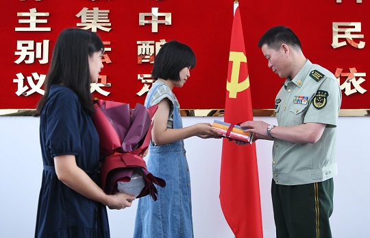 “鴻玥,祝你在軍校這個新的舞臺上鍛煉成才……”9月7日,在武警安徽總隊合肥支隊會議室,支隊政委張雁飛向即將前往武警工程大學(xué)報到的萬鴻玥表達(dá)了美好祝福。