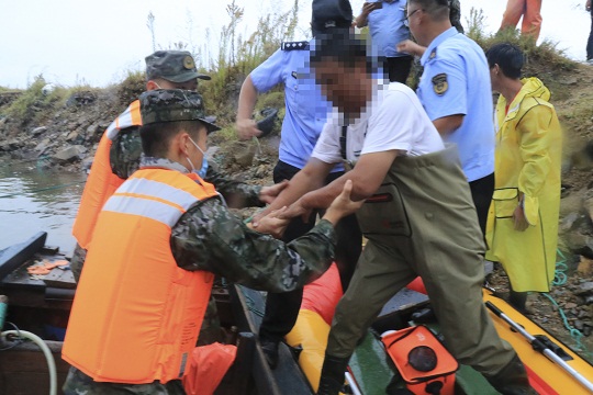 9月16日,山東威海海警局接到報(bào)警稱,一艘漁船在榮成市神飛造船廠附近海域發(fā)生船舶傾覆,兩名群眾被困,受臺風(fēng)“梅花”影響,事發(fā)海域風(fēng)力達(dá)7級以上,浪高3-5米,情況十分危急。海警執(zhí)法員第一時(shí)間趕赴現(xiàn)場,并對接相關(guān)部門聯(lián)合行動。海警執(zhí)法員不斷向被困群眾喊話安撫情緒,并采取吊車起吊的方式實(shí)施救援。經(jīng)過近一個(gè)小時(shí)的努力,兩名群眾安全脫困,目前身體狀況良好。