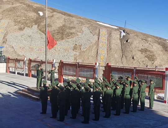 升旗是一項(xiàng)神圣的儀式,更是對(duì)靈魂的一次洗禮。當(dāng)天,該總隊(duì)各基層部隊(duì)也紛紛舉行了升旗儀式,為祖國(guó)慶生。在海拔4800多米的昆侖山,擔(dān)負(fù)青藏鐵路昆侖山隧道守護(hù)任務(wù)的官兵升起國(guó)旗。這里高寒缺氧、風(fēng)雪彌漫,條件極為艱苦,但官兵高喊“寧可生命透支,不讓使命欠賬”的口號(hào),扎根高原、無(wú)悔奉獻(xiàn)。升旗儀式結(jié)束后,戰(zhàn)士羅昌強(qiáng)深情地說(shuō):“感覺(jué)所有堅(jiān)守和辛苦,就為了這一面‘中國(guó)紅’!”