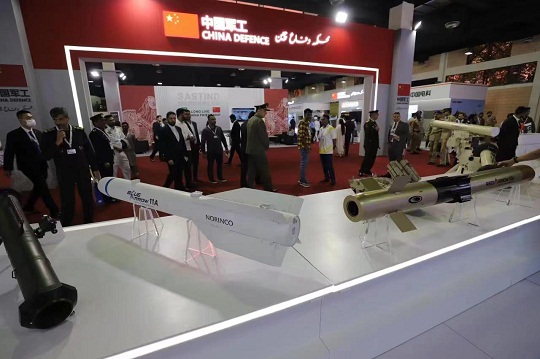 本屆展會吸引了來自50余個(gè)國家代表團(tuán)參展觀展,中國展區(qū)面積750平方米,是參展規(guī)模最大的國家展團(tuán)之一。中國展區(qū)采用一體化統(tǒng)一設(shè)計(jì)、統(tǒng)一搭建、統(tǒng)一組展的“中國軍工”展團(tuán)形式獨(dú)立成館,展區(qū)入口中式紅色斗拱設(shè)計(jì)醒目,展現(xiàn)中國特色傳統(tǒng)文化;展區(qū)內(nèi)藍(lán)白色主基調(diào)鮮亮明快,凸顯科技主題;展品成體系成系列呈現(xiàn),展示先進(jìn)技術(shù)水平;中國長城與巴基斯坦標(biāo)志建筑獨(dú)立塔相結(jié)合的設(shè)計(jì)圖案,體現(xiàn)中巴傳統(tǒng)友誼源遠(yuǎn)流長。